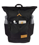 The JanSport Hatchet Rolltop backpack combines versatility and durability with a 31L capacity, padded 15" laptop sleeve, and expandable water bottle pockets. Designed for comfort and organization, it features padded straps, multiple zippered compartments, and rugged 600D polyester with suede trims—perfect for everyday adventures.