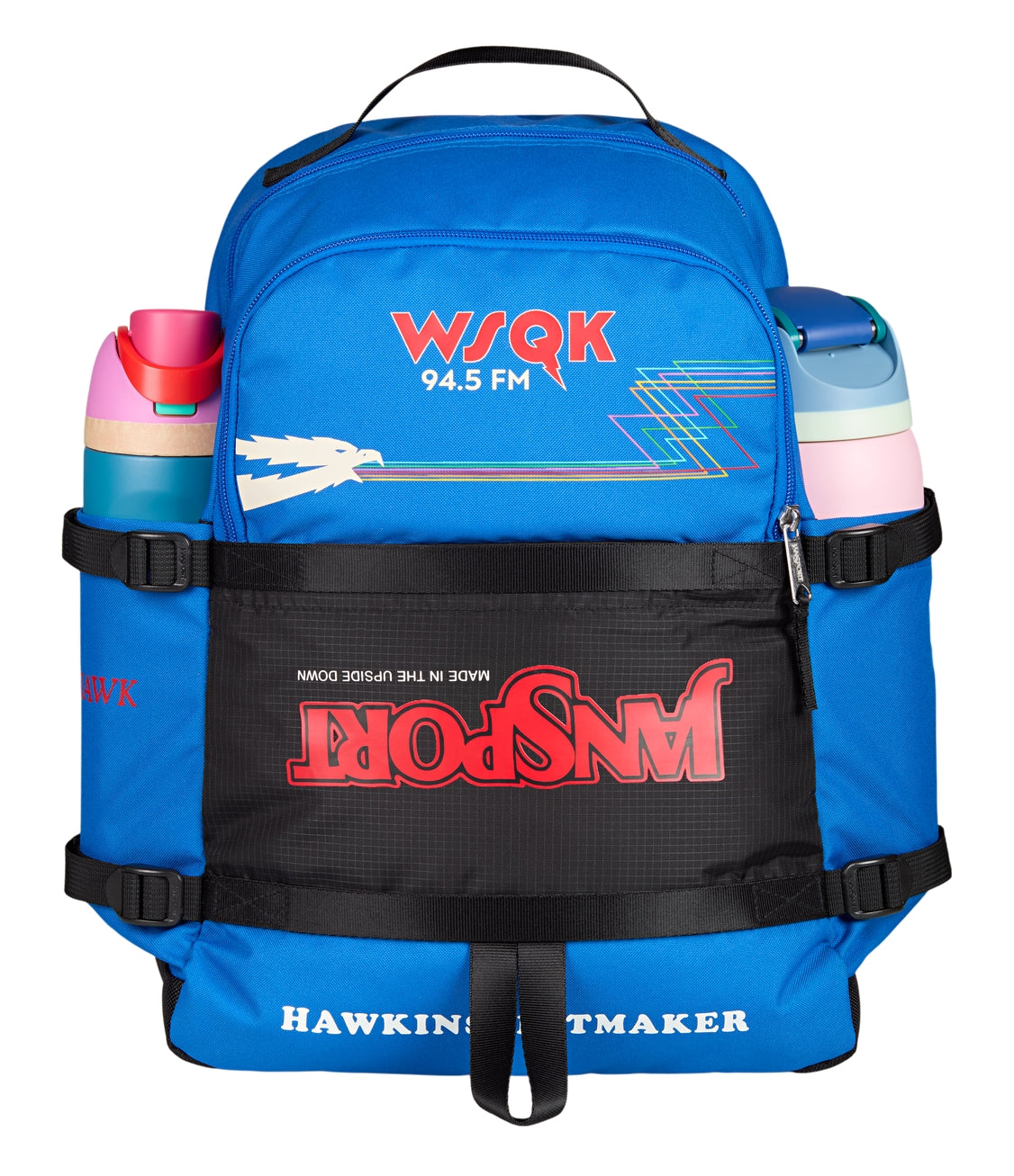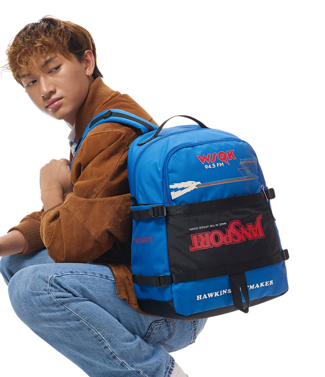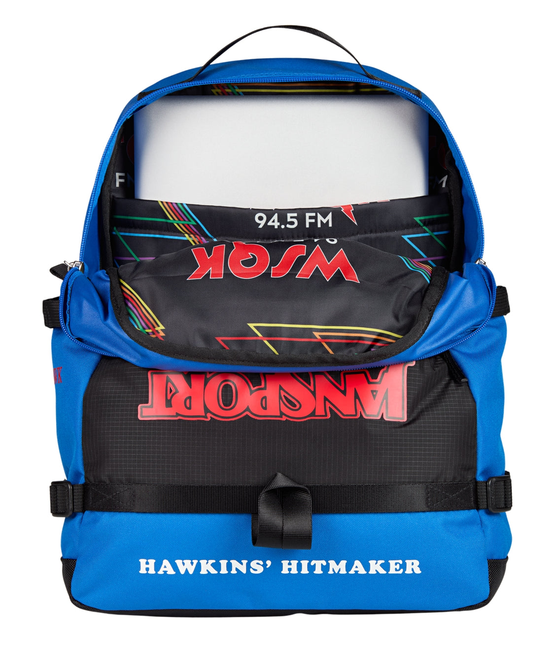 WSQK is live and you’re on the air. This pack’s got room for the whole signal, from cassettes to class notes. It carries your personal playlist and everything they can’t tune out. Finished with flipped JanSport branding and radio-style graphics, it dials straight into Hawkins’ strangest frequency.