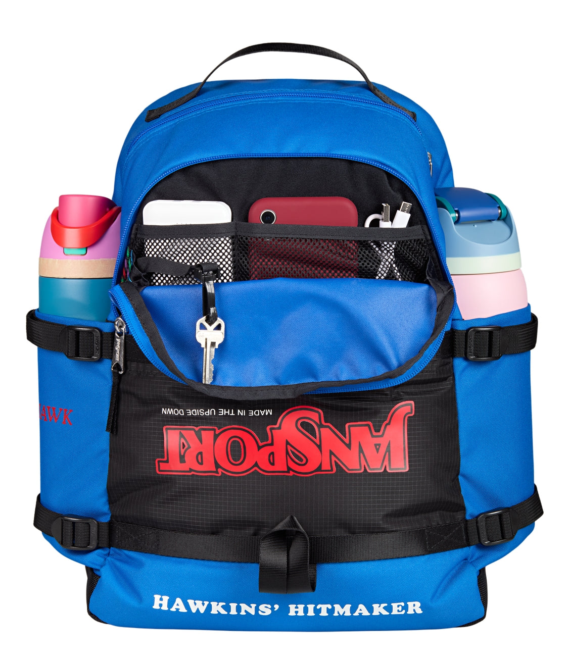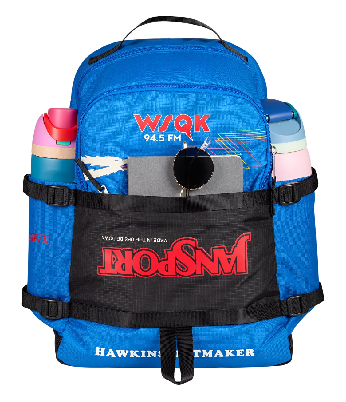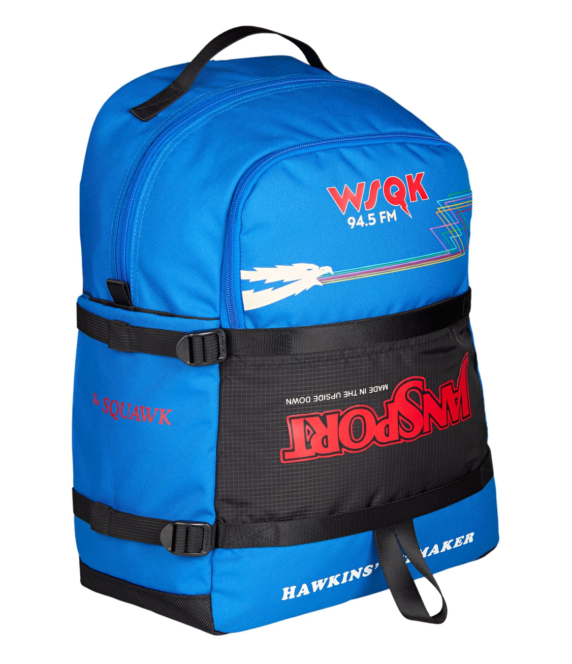 WSQK is live and you’re on the air. This pack’s got room for the whole signal, from cassettes to class notes. It carries your personal playlist and everything they can’t tune out. Finished with flipped JanSport branding and radio-style graphics, it dials straight into Hawkins’ strangest frequency.