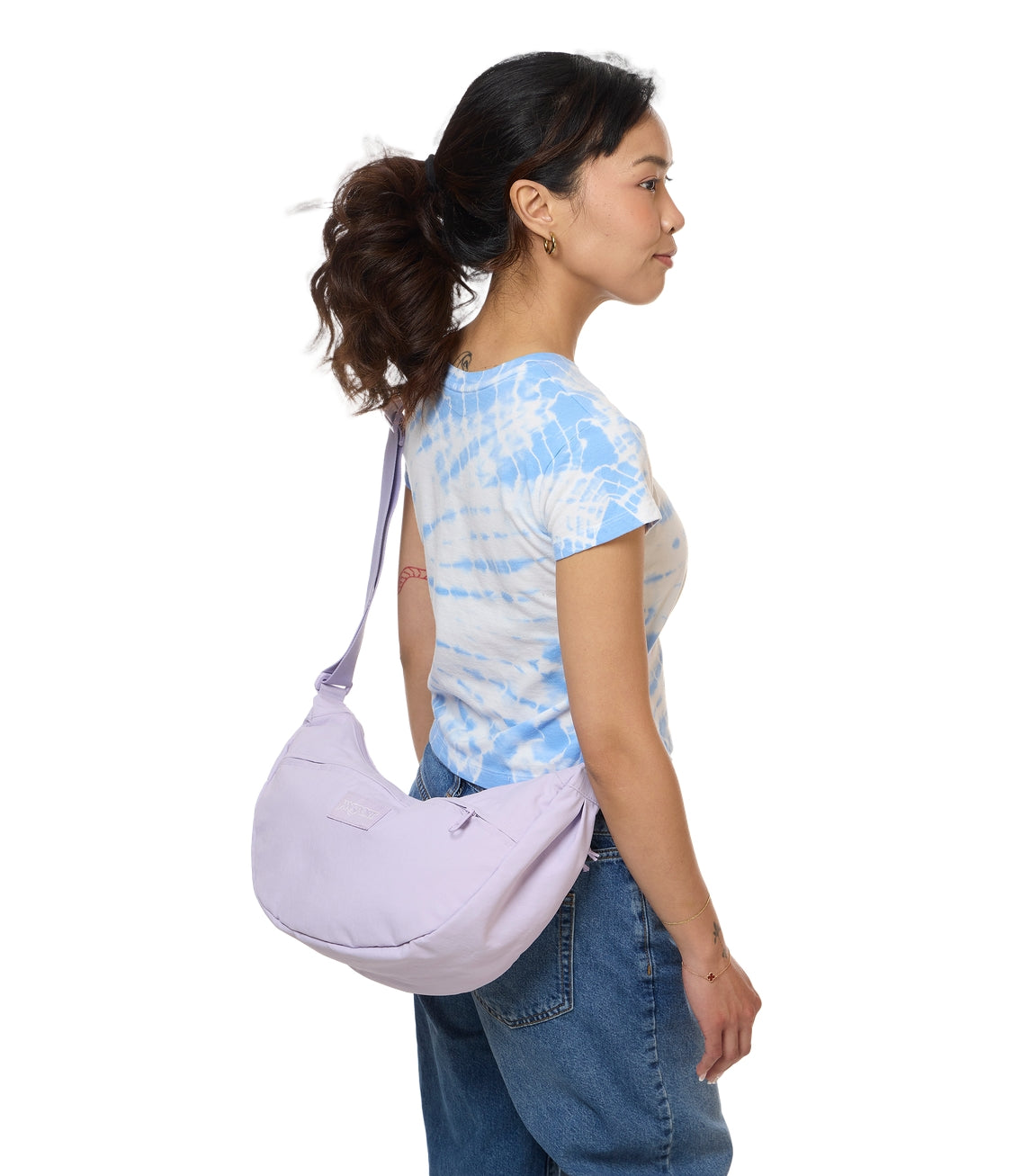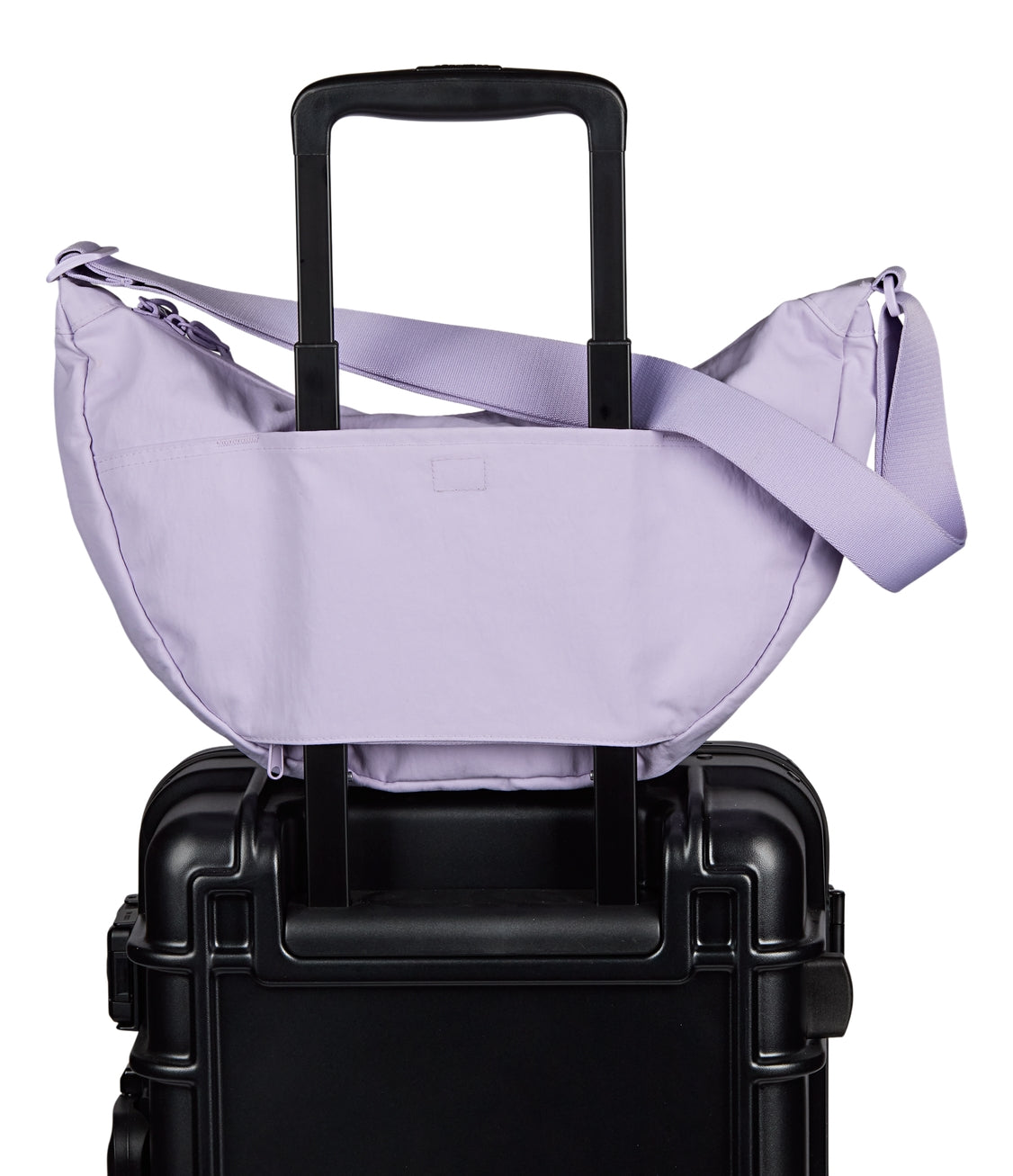 Soft and spacious for ease, movement, and everyday flow. The Unphased Crossbody Large features a slouchy silhouette made in part with 100% recycled crinkle nylon in a smooth, tonal color. Wear it crossbody or over your shoulder, or attach it to your suitcase with the trolley pass-through. Interior pockets and a roomy main compartment hold your backup layer, headphones, and whatever helps you move through the day with calm.