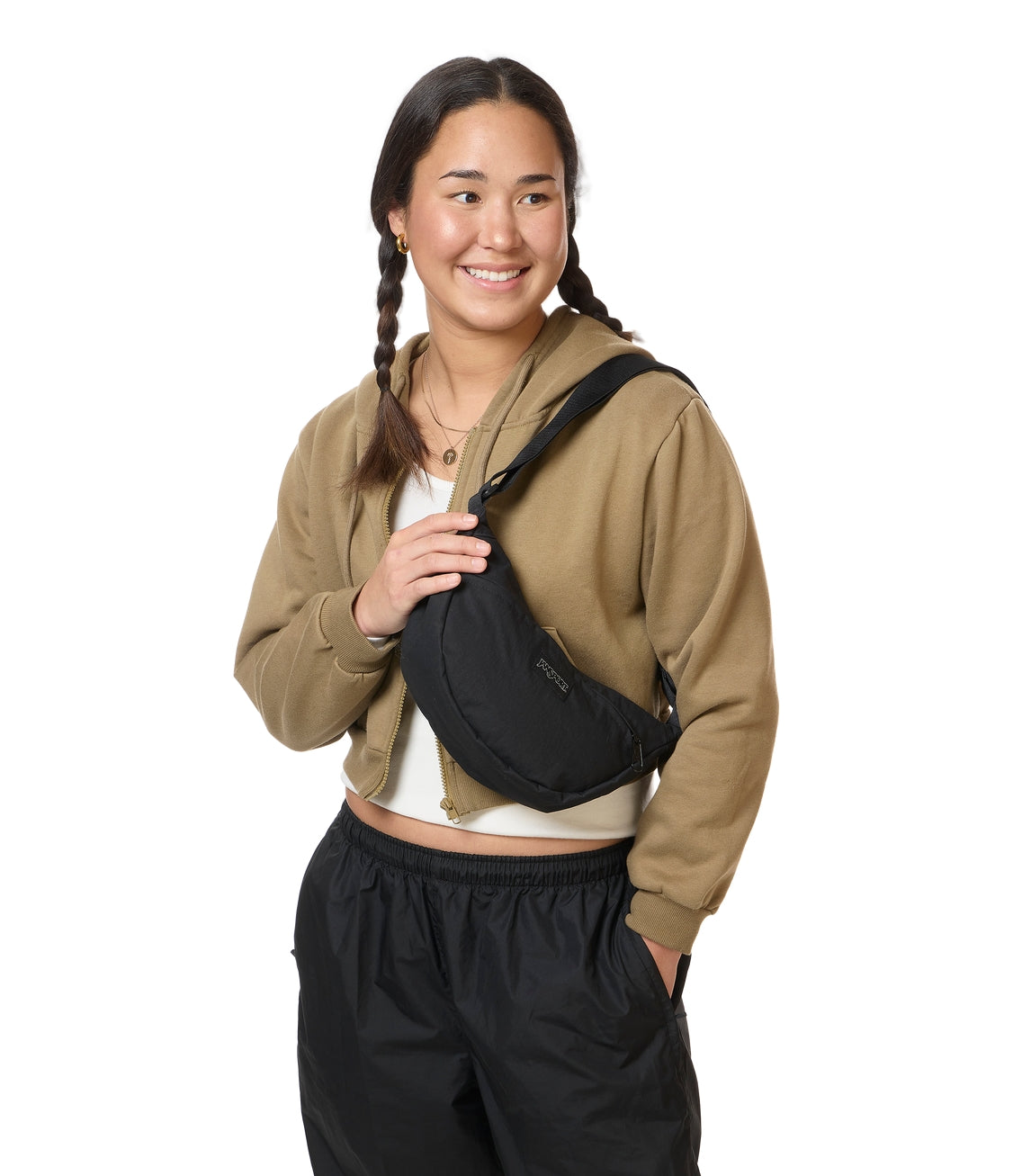 A relaxed crossbody for light carry and everyday ease. The Unphased Crossbody Small features a soft, slouchy shape made in part with 100% recycled crinkle nylon in a smooth, tonal color. Adjustable for crossbody or over-the-shoulder wear, it holds your phone, keys, and small essentials. Made for everyday movement and softer moments.