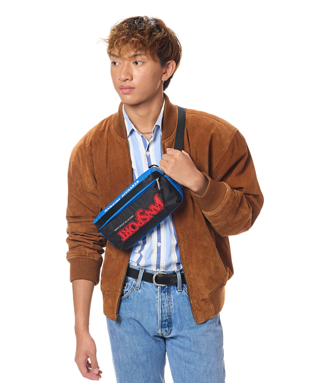 When you're transmitting on the go, this waistpack keeps the signal strong. Just big enough for your mixtape stash and pocket-sized FM tuner. Finished with WSQK radio graphics and a flipped JanSport patch, it’s made to broadcast the strange.